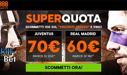 Juventus alza la coppa a 7.00 o Real Madrid a 6.00 su 888sport